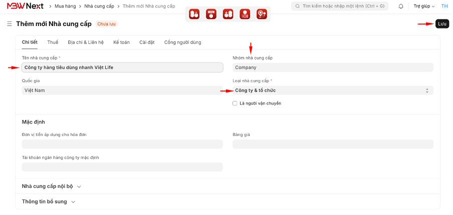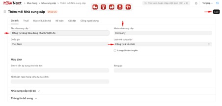 1. Nhấn Thêm mới, nhập Tên nhà cung cấp.