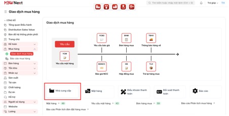 ● Đường dẫn: Mua hàng > Giao dịch mua hàng > Nhà cung cấp.